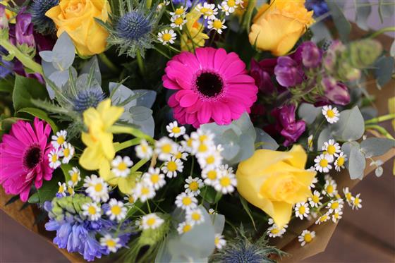 This arrangement is beautifully wrapped and packaged at our shop and delivered direct by us.