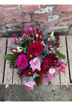 Presented in a stylish hatbox, this Valentine’s arrangement features a beautiful mix of pink and red blooms, carefully paired with seasonal flowers and soft foliage. Romantic, elegant, and effortlessly charming, it’s a perfect gift to celebrate love, affection, and meaningful moments.