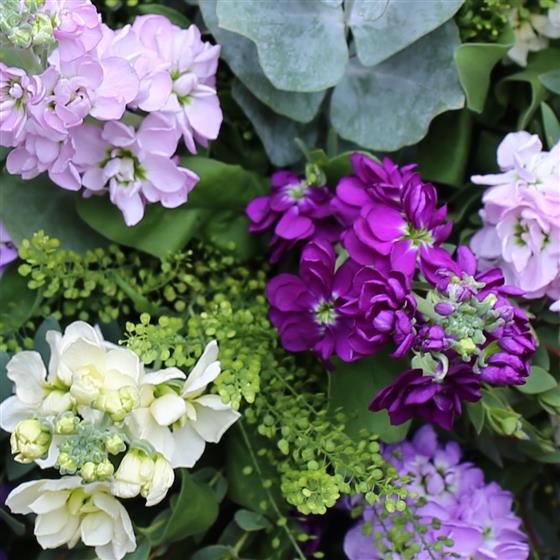 A hand tied of highly scented stocks and aromatic foliages.